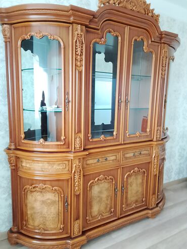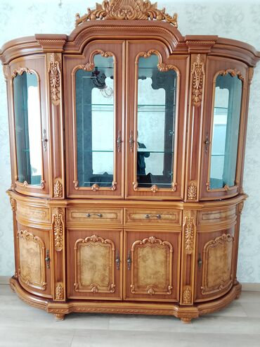 - Ön hissə: vitrin üçün şüşəli 4 qapı (içəridə şüşə rəflər), yanlarda qövs formalı vitrin bölmələri