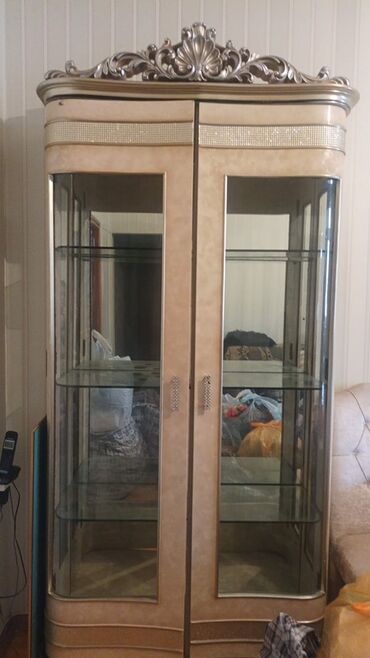 Klassik üslubda vitrin şkafı və rahat divan dəsti