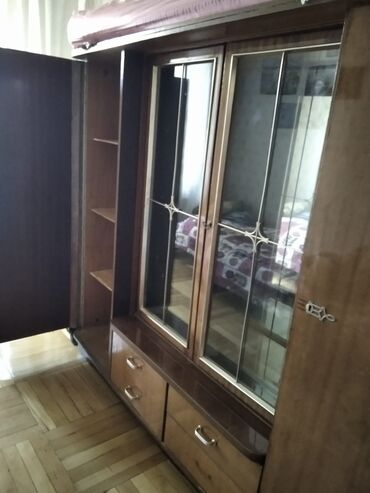 Klassik üslubda böyük vitrinli divar dolabı