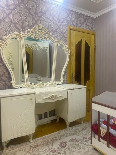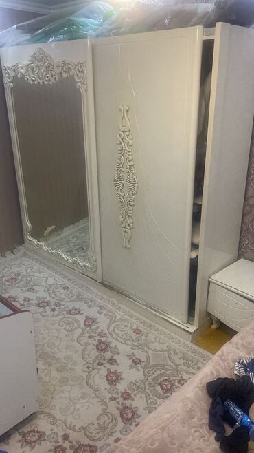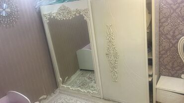 Yataq otağı dəsti – modern və eleqant dizayn Tərkibi: - 4 qapılı, güzgülü qarderob (daxildə asılqan bölmələri, rəflər və şkaf bölmələri) - İki tumba (yan stolçiklər, çekmecəli) - Komod/şkaf güzgü ...
