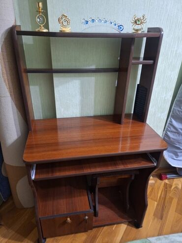 - Kompüter/iş masası: yuxarı rəflər, klaviatura üçün çıxarılan platforma, kilidli çekmece və alt bölmə, təkərli baza