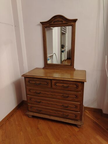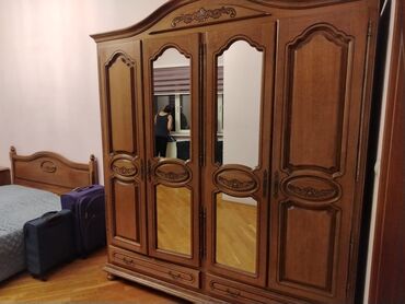 Yataq otağı mebel dəsti Dəst tərkibi: - Geniş 4 qapılı şkaf – ortada böyük güzgülü qapılar, uzun metal tutacaqlar, ağac teksturalı və tünd boz panellərin kombinasiyası. - komod – üstündə iri güzgü...