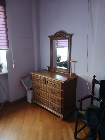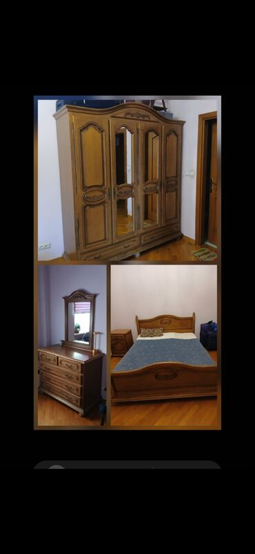 Yataq otağı dəsti – modern və eleqant dizayn Tərkibi: - 4 qapılı, güzgülü qarderob (daxildə asılqan bölmələri, rəflər və şkaf bölmələri) - İki tumba (yan stolçiklər, çekmecəli) - Komod/şkaf güzgü ...