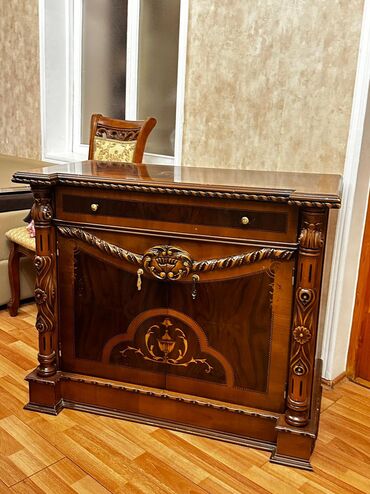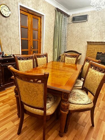 Komplekt ailə görüşləri, ziyafətlər və qonaq otağı interyerinə klassik zərafət qatmaq üçün ideal seçimdir.stol 6 stulla500m.kamod.80m.2 kreslo 120 m