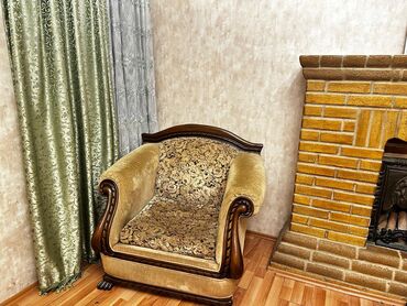 - Kreslolar: 2 ədəd. Geniş oturacaq və dərin bel hissəsi, qolları spiral formalı ağac dekorla. Ön və yan hissələrdə oyma ağac çərçivə, oturacaq və arxa hissə çiçək naxışlı parçadan, korpus isə velür toxumalı parça ilə üzlənib. Dayanıqlı taxta baza və “pəncə” formalı ayaqlar.