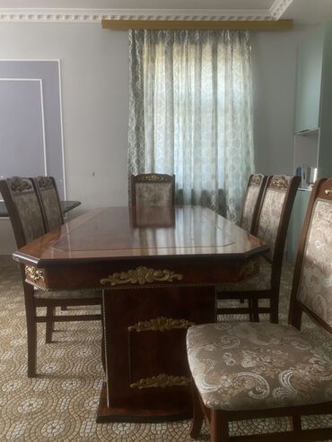 - Komplekt: 1 böyük yemək masası + 6 stul