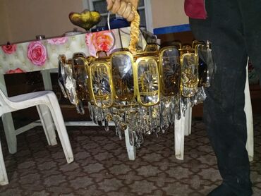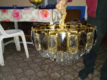 Şüşə/kristal elementlər işığı güclü əks etdirir və parıltı effekti yaradır. Qızılı çərçivə interyerə klassik və zərif ab-hava qatır.