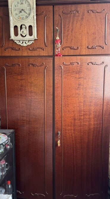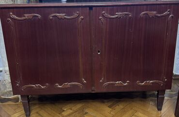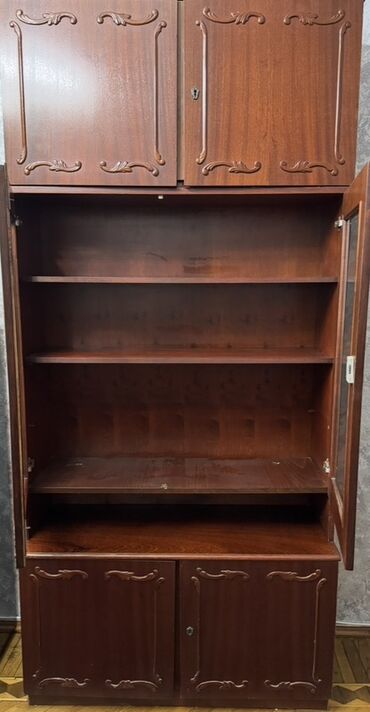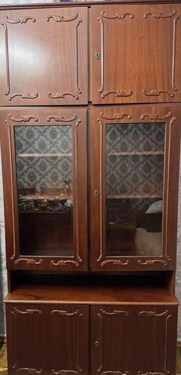 - Orta hissədə iki şüşə qapılı vitrin (rafllarla), dekorativ relyef naxışlar