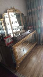 Klassik üslubda taxtadan hazırlanmış mebel dəsti Tərkibi: - Geniş güzgülü konsol/komod: üstü naxışlı çərçivəli böyük güzgü, ön və yanlarda oyma dekor, mərkəzdə çekmece, aşağı hissədə 2 qapılı bölm...