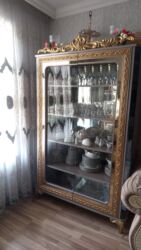 - Böyük vitrinli şkaf (3 bölməli, şüşə qapılar, içəridə şüşə rəflər