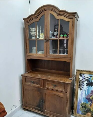 - Yuxarı hissə: şüşəli ikiqapılı vitrin, dekorativ çərçivələr, içəridə rəflər