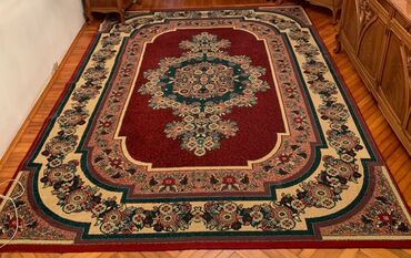 Xalça – əl işi, Şərq naxışlı - Material: təbii yun (toxuma sıxlığı yüksək, yumşaq və davamlı quruluş) - Rəng palitrası: tünd qırmızı fon üzərində tünd lacivərd, narıncı, yaşıl, çəhrayı və bənövşəy...