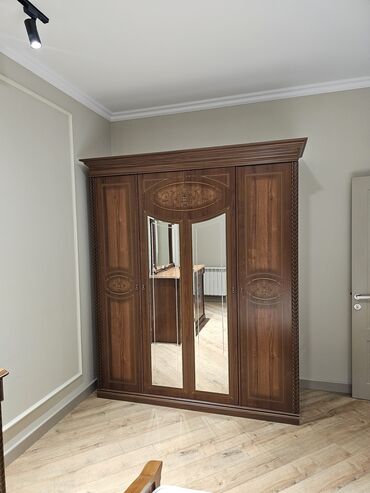 Klassik üslubda tam yataq otağı dəsti Tərkibi: - 4 qapılı iri qarderob – ortada 2 ədəd tam boy güzgülü qapı, kənarlarda taxta panelli qapılar; yuxarıda dekorativ karniz, klassik relyef oyma elemen...
