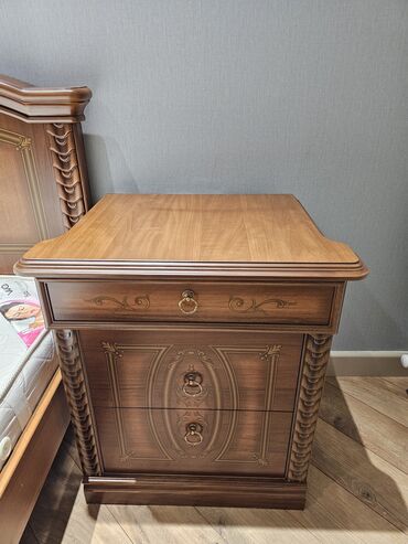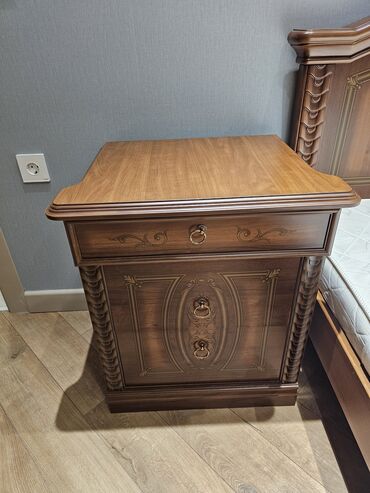 Rumıniya isdesali Klassik üslubda yataq otağı mebeli dəsti deməyə olar işlənmiyib Tərkib: - 2 ədəd tumbə: hər birində yuxarıda kiçik çekmece, aşağıda qapılı bölmə. Dəyirmi metal tutacaqlar, dekorat...