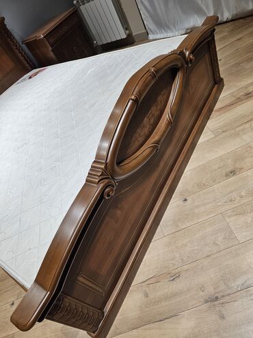 Klassik üslubda massiv ağacdan hazırlanmış yataq dəsti. Komplekt: - Ağac oyma başlıq və ayaqlıqla iki nəfərlik çarpayı karkası - Çarpayının içində saxlama üçün qaldırılan əsas (taxta lövhəli baza)...