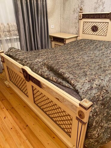 - İki nəfərlik çarpayı (başlıq və ayaqlıqda ornamentli panellər)