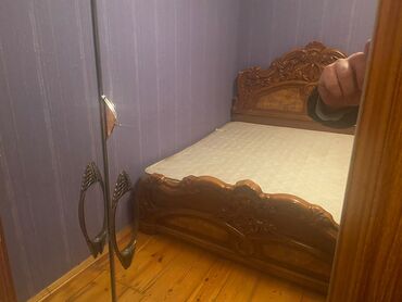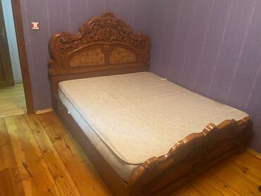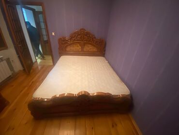 - İki nəfərlik çarpayı: oyma başlıq və ayaqlıq, klassik dekor elementləri. Döşək üstündədir.