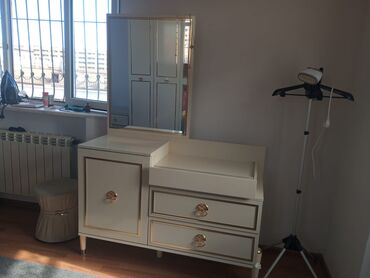 - Tualet masası-yığımı – böyük şaquli güzgü, 1 qapılı şkaf bölməsi, 2 çekmece, üst hissədə kosmetika üçün bölmə