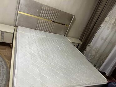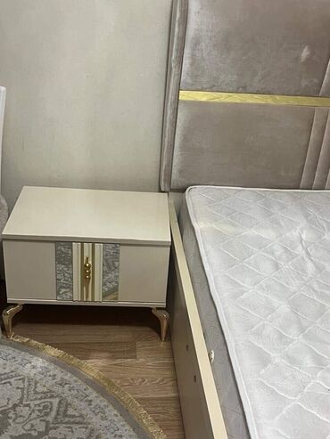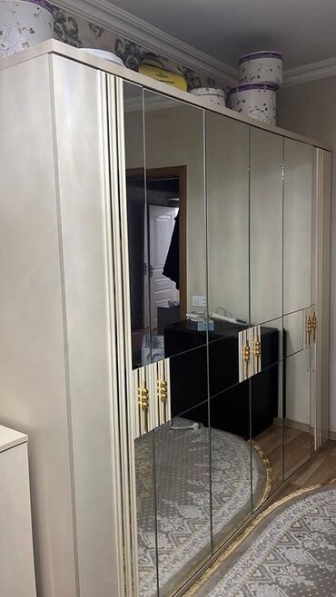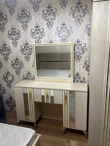 Yataq otağı dəsti – klassik və zərif dizayn Tərkibi: - Çarpayı (yumşaq başlıq, qızılı detallar) - 2 ədəd tumba - Güzgülü makiyaj/komod masası (çekmece və dolab bölməsi ilə) - 4 qapılı şkaf: orta h...