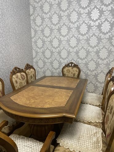 - Dəst: 1 ədəd böyük yemək masası + 6 ədəd stul