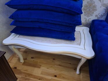 - Jurnal masası: krem rəng, qızılı zərif konturlar, dalğalı forma, oyma ayaqlar