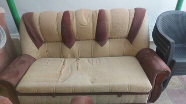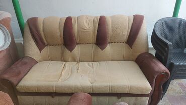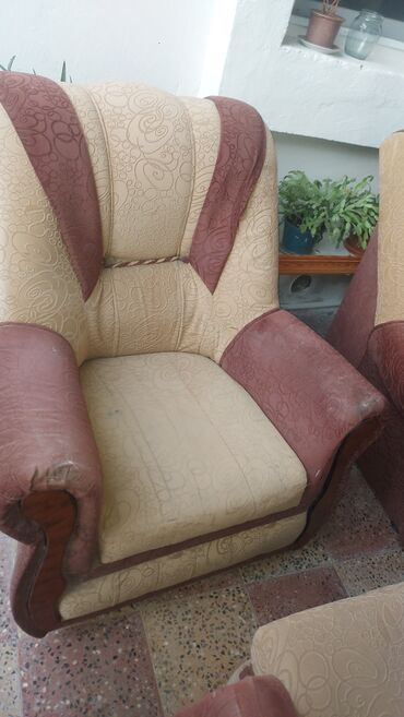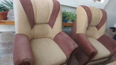 - Qeyd: Divanın oturacaq hissəsində yırtıqlar, parçada aşınmalar görünür; kreslolarda da parça və süngərdə istifadə izləri mövcuddur. Təmir və üzlük yenilənməsi üçün uyğun dəstdir.