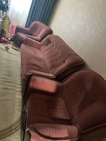 Klassik üslublu yumşaq mebel dəsti - Tərkib: 1 böyük divan və 2 kreslo - Material: məxməri toxumalı yumşaq parça - Rəng: toz-çəhrayı (pudra) tonlarında - Dizayn: dərin kapitone tikişli bel hissəsi...