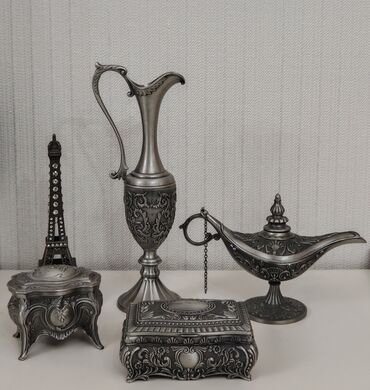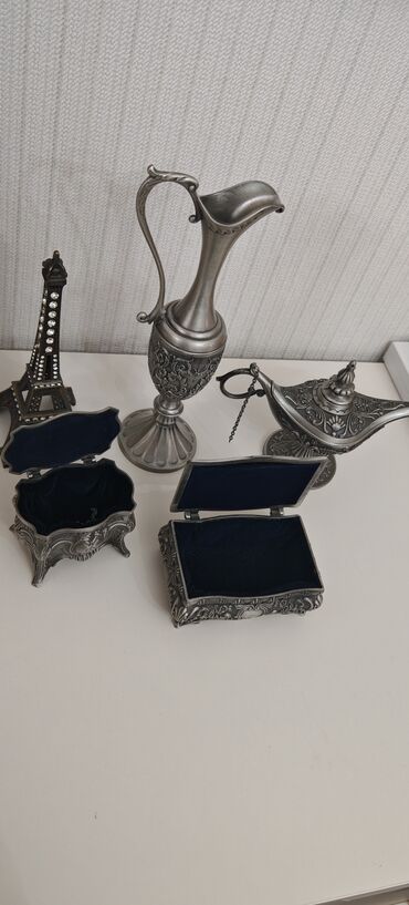 Dekor qablari. Bahali metal (Gumuw deyil) Yaxwi veziyyetdedir. Tek tek satılmır. Wekilde gorduklerinizin hamsi qiymete daxildir.