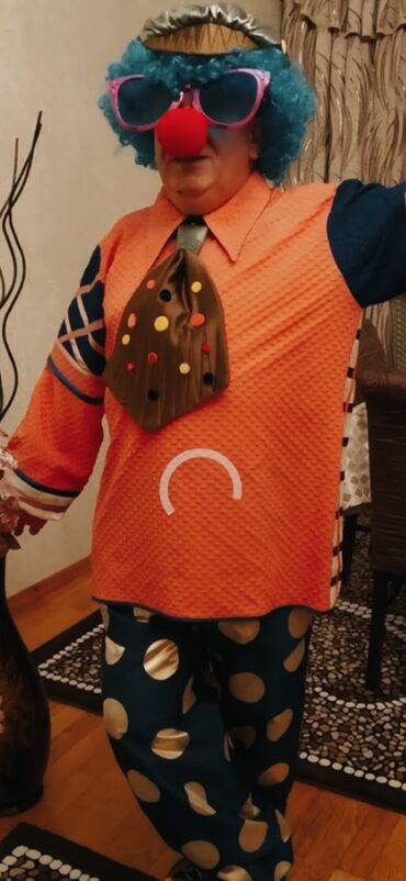 Kloun kostyumu burun ,parik kepka ,qalstuk,ayaqqabi hamısı bir yerdə satılır təp təzədir qiyməti 80 manat