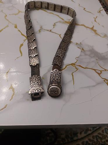 Qədimi gümüş kəmər satılır Antikvardı 2əsr yaşı var - Qara parça əsaslı, boyunca metal nəbati və ulduz formalı aplikasiyalarla bəzədilib. - Uclarında iri, oyma naxışlı metal plaketlər və möhtəşəm...
