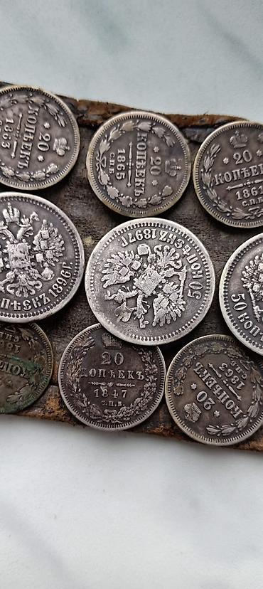 - Sikkələr: əsasən “20 kopeyka” və “50 kopeyka” nominalında, üzərində iki başlı qartal gerbi və “СПБ” zərbxana nişanı görünür. Oxunan tarixlərdən bəziləri: 1847, 1853, 1861, 1865, 1890 və s.