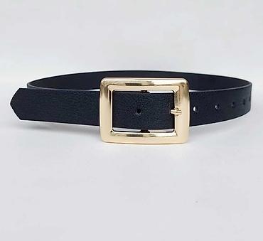 Geniş qara kəmər - Stil: Minimalist, iri düzbucaqlı tokalı - Rəng: Xarici tərəfi mat qara, daxili tərəfi açıq bej - Tokası: Kvadrat formalı, metal iynəli bağlanma - Dəliklər: Metal halqalarla gücl...