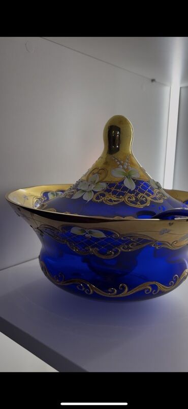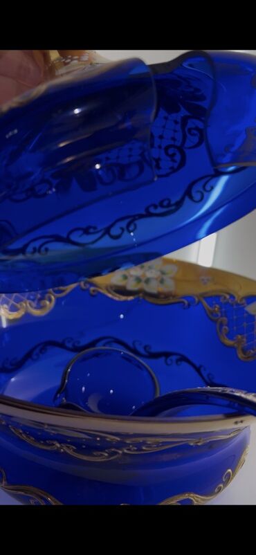 - Komplekt: qapaqlı kasa, içəridə uyğun mavi şüşə qaşıq