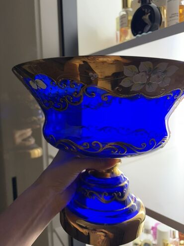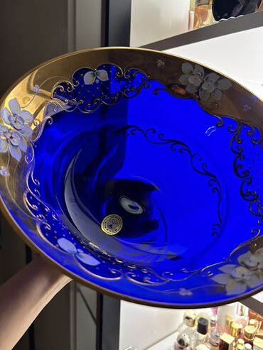 - Kobalt-mavi, qalın şüşədən hazırlanmış, iri ölçülü ayaqlı qab.