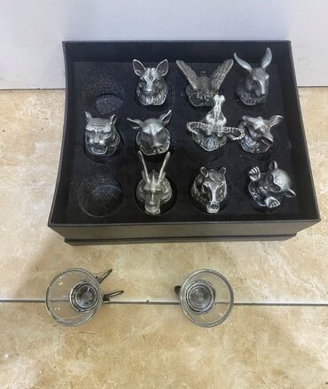 Heyvan başı formalı tutacaqlardan ibarət dəst. Hər bir qədəh müxtəlif bürc heyvanını təmsil edən detallı qızılı rəngli heyvan heykəlciklərinin üzərində yerləşir. Heyvan fiqurları arasında dovşan, c...
