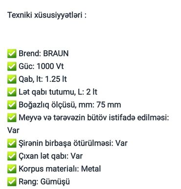 Meyvə şirəsi sıxan- az istifadə olunub. Texniki problemi yoxdur. Yunanıstanan alınıb.