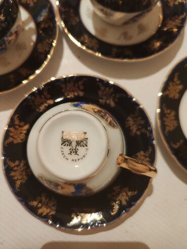 Qəhvə dəsti, rəng - Göy, Farfor, Bohemia, 6 nəfərlik, Çexiya