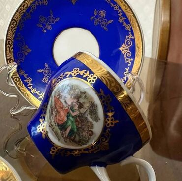Qəhvə dəsti, rəng - Göy, Farfor, Madonna, 6 nəfərlik, Almaniya