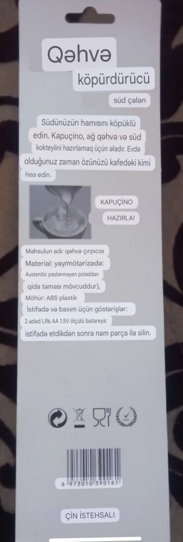 YeniKofe və süd köpükləndirici, yaşıl rəngli mətbəx aləti. Bateraya ilə işləyir, südlü qaymaqlı kofe etmək üçün super mətbəx aləti. Yenidir. Deaktivdə olan mallarda satışdadır satılan mallar elandan silinir.