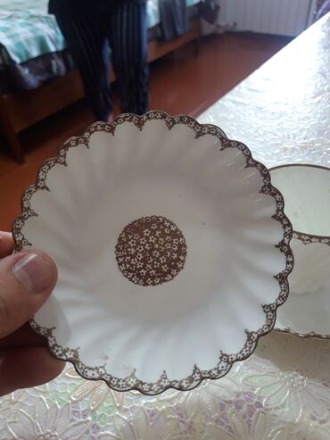Gədim sovet gəhfə servizi,rusiyanın,bufetdə galıb,işlınməyib,6 fincan,6 nəlbəki, süd gabı, çaydan,bir dənə şəkər gabısı yoxdur,gırılıb ,heç bir sınığı,gırıntısı yoxdur 25man