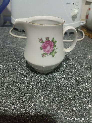 Gədim sovet gəhfə servizi,rusiyanın,bufetdə galıb,işlınməyib,6 fincan,6 nəlbəki, süd gabı, çaydan,bir dənə şəkər gabısı yoxdur,gırılıb ,heç bir sınığı,gırıntısı yoxdur 25man