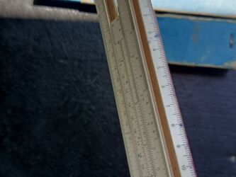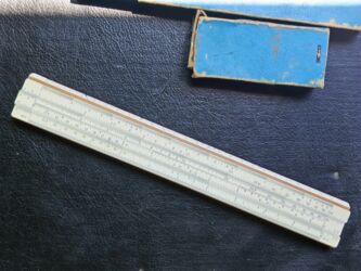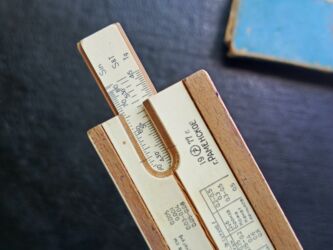 Köhnə logarifmik lineyka (slayd xətti) — retro kolleksiya əşyası. Sovet dövrünə aid logarifmik xətt (логарифмическая линейка). Yaxşı vəziyyətdədir, üzərində bütün şkalalar oxunur.