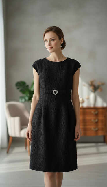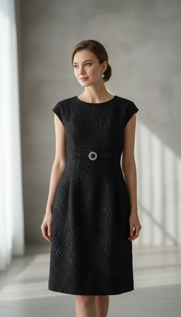 Alındıqdan sonra geyinilməyib, yenidir, 44 ölçü. Öz qiyməti göründüyü kimi 92 azndir Qara rəngli zərif qadın paltarı. - Dizayn: Karevi dekolte, yüngül qabarıq çiyinlər, 3/4 qol - Kəsim: Bədəni i...