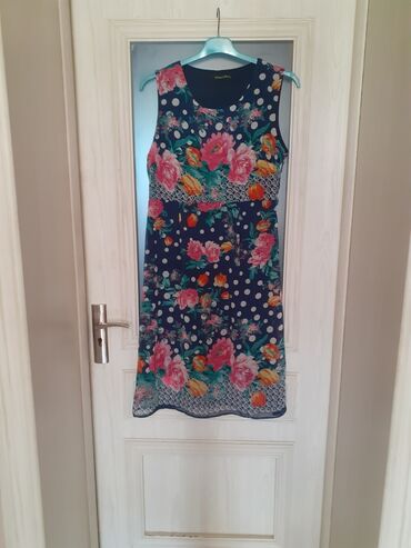Şifon podkladkası ilə, çox az qeyinilib, təzə kimidir, rənglər çox cəlb edir, simvolik qiymətə verirəm, paltar bahalıdır, razmeri 46-48ə də qədər, metro ınşaatçılar