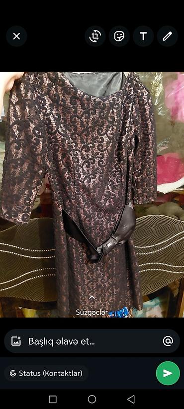 Qara krujeva kokteyl donu - Model: qısa, bədənə oturan siluet - Material: üst hissə tam krujeva (güllü naxış), alt hissədə açıq bej rəngli astar - Yaxa: ön tərəfdə şəffaf krujeva detalı; arxa hiss...