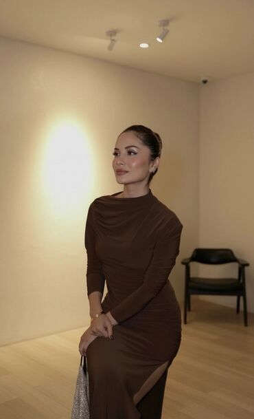 Ziyafet geyimi, qəhvəyi rəng 40 razmer, bir dəfə toya geyinilibdemek