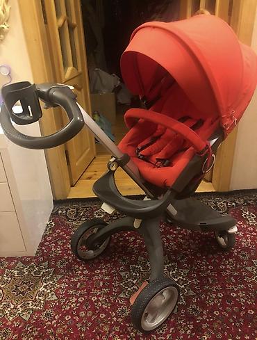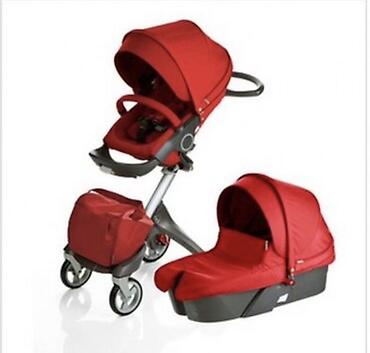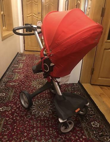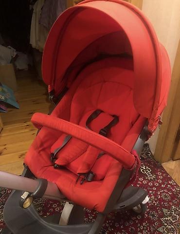 Uşaq arabası – modul tipli, 3 təkərli şassi və qırmızı rəngli üst bloklar Xüsusiyyətlər: - Yüksək şassi: oturacaq/körpə beşiyi yerdən hündürdə saxlayır, valideynlə göz təması və masaya yaxınlıq üç...