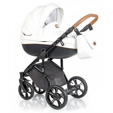Uşaq arabası – premium sinifdə, dörd təkərli, güclü metal çərçivə və dəriyə bənzər qəhvəyi detallarla. Geniş beşik tipli oturacaq bölməsi var, tam qapana bilən böyük tente/kabuşka günəş və küləkdən...