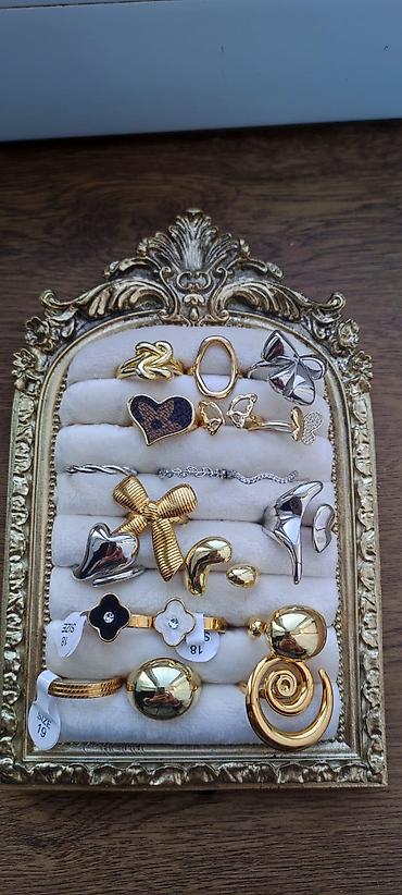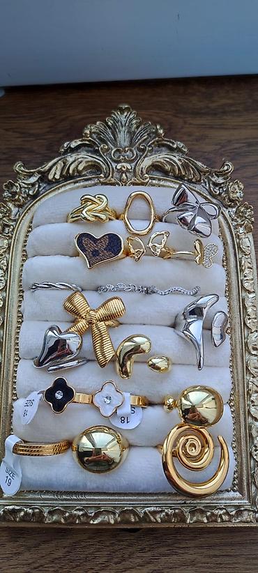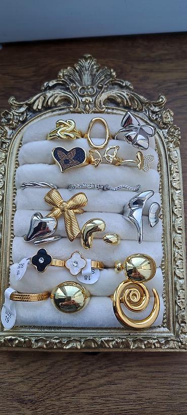 - Müxtəlif formalarda dekorativ üzüklər: ürək, kəpənək, yay (bow), spiral, oval, damla/abstrakt formalı, yonca və şunurvari.