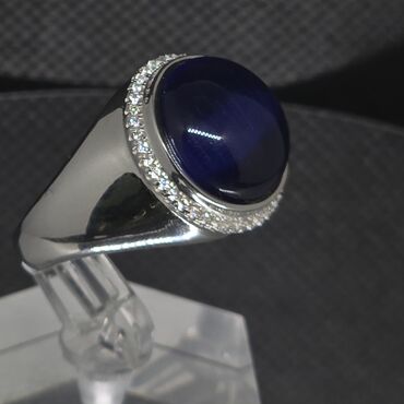 Ünvandan götürməGümüş üzük 925prob tebii nadir goy rəngde Pələng gözü